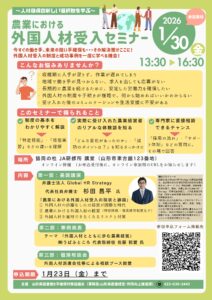 令和8年1月30日開催の「農業における外国人材受入セミナー」の個別相談会への参加を希望される企業・団体等を募集します。