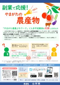 このような状況から、県では、これまでさくらんぼ作業に限定して県職員がアルバイトという形で協力しやすくする制度を運用してきましたが、今年度から「やまがたチェリサポ職員制度+」(愛称「チェリサポ+(プラス)」)として、さくらんぼ作業のみならず、「農作業全般」への従事を可能として運用してまいります。